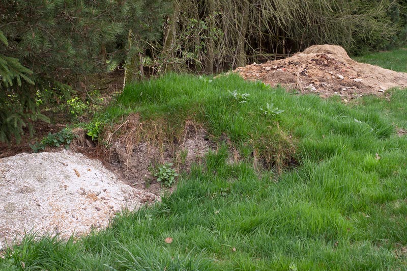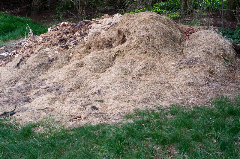 Zu meiner Frage: Wir haben noch einen ziemlich wild aufgeschütteten Kompost-Misthaufen, der derzeit noch nicht mit Erde bedeckt worden ist. Daneben liegt noch recht viel Katzenstreu auf Mineralbasis oder was immer das war (hellgraues Granulat).