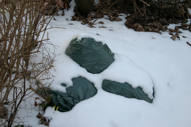 Frage mich, wohin mit dem Zeug. In einen Plastiksack mit Löchern und dann nach draußen? Drinnen ist bei uns leider kein Platz.