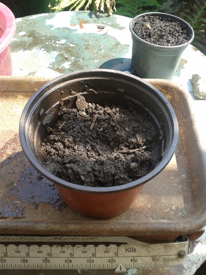 Nun habe ich beide Töpfe halbschattig aufgestellt und werd sie jeden Tag wiegen mal sehen.