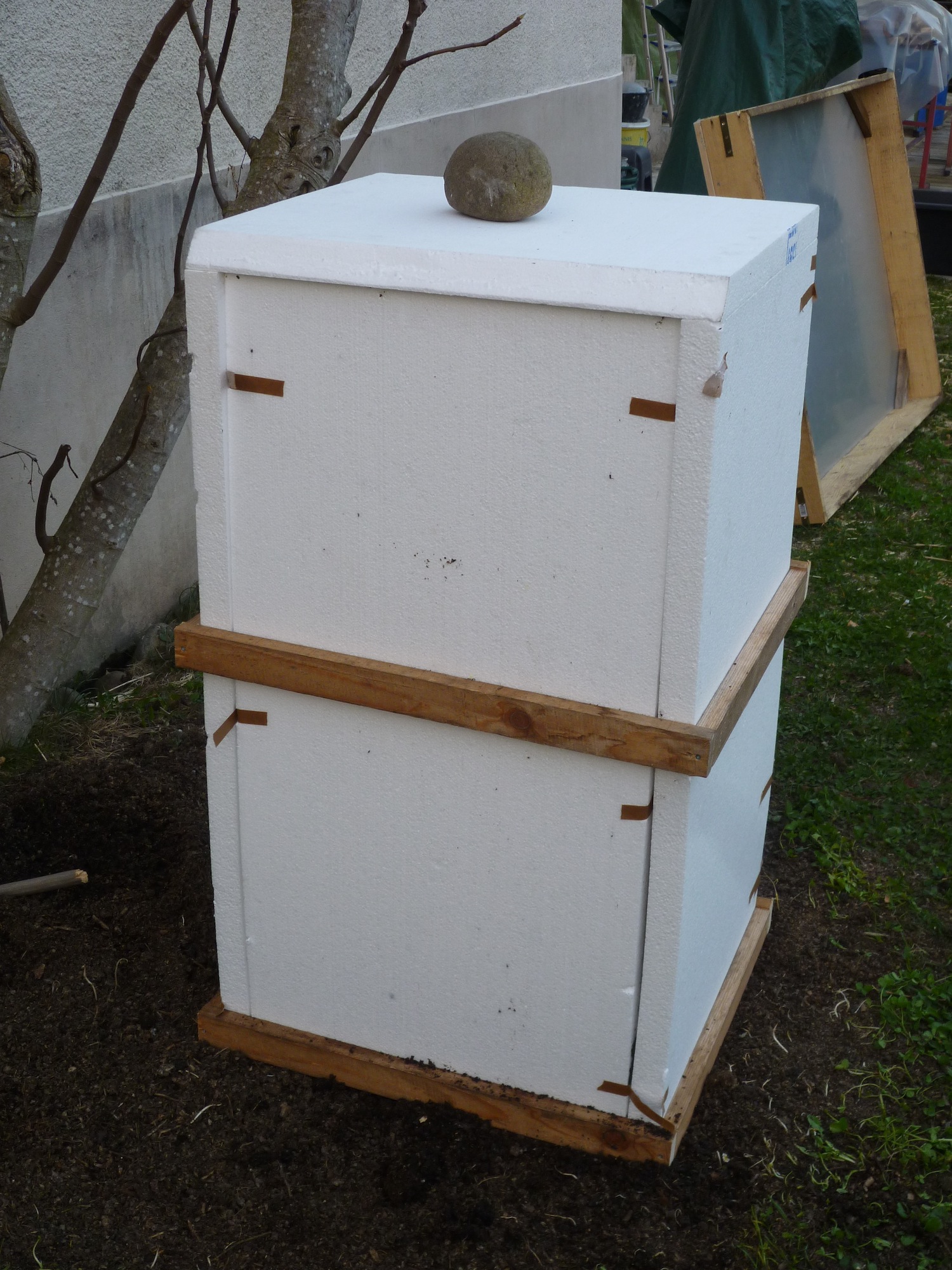 der Winter ist (zumindest voraussichtlich) vorbei und ich hab's leider mit der Kompostheizung nicht rechtzeitig geschafft. Jetzt heizt's aber ganz kräftig ein, hier zu sehen ist ein supereinfacher, superbilliger Thermokomposter den ich zusammenimprovisiert habe (bald brauche ich viel fruchtbaren Kompost). Der Komposttumbler hat bisher nur mässig funktioniert, wahrscheinlich liegt es daran dass die Luftzufuhr nicht ausreichend ist, d.h. ich habe ihn zu dicht gebaut. Was für mich beim Kompost auf den Fotos erstaunlich ist, sind diese Pilzhyphen, die das ganze Material durchziehen. Die Temperatur ist ca. 55°C, es muss also ein thermophiler Pilz sein. Das wichtigste daran ist dass dieser Pilz es überhaupt erlaubt, dass genügend Sauerstoff durch den Haufen (oder Turm) diffundieren kann. Das Material besteht aus gehäckselten Küchenabfällen, Sägemehl und Holzkohlepulver und Urgesteinsmehl. Jetzt giesse ich nach Gefühl laufend etwas Urin oben hinein um das meiste aus dem überschüssigen Kohlenstoff zu gewinnen.