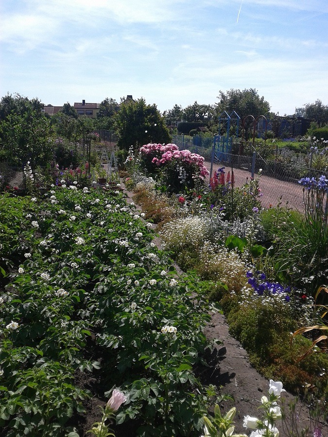 Mein Garten ist viel kleiner, vielleicht 200 qm und er ist auch überwiegend ein Rasen-, Stauden- und Kräutergarten. Aber immerhin habe ich seit letztem Jahr ein Quadratbeet mit Mangold, Bohnen, Zucchini, Kürbis, Rucola, Kerbel, Salat, Kohlrabi, ewigem Kohl und seit neuestem auch noch einer Speisechrysantheme:). Tomaten, 2 Obstbäume und diverse Beeren habe ich natürlich auch. Den Garten, der zu unserer Doppelhaushälfte gehört, habe ich nun 14 Jahren, aber wegen unseres trockenen Sandbodens habe ich trotz regelmäßiger Kompostgaben bisher keine wirklich großartigen Gärtner-Erfolge gehabt.