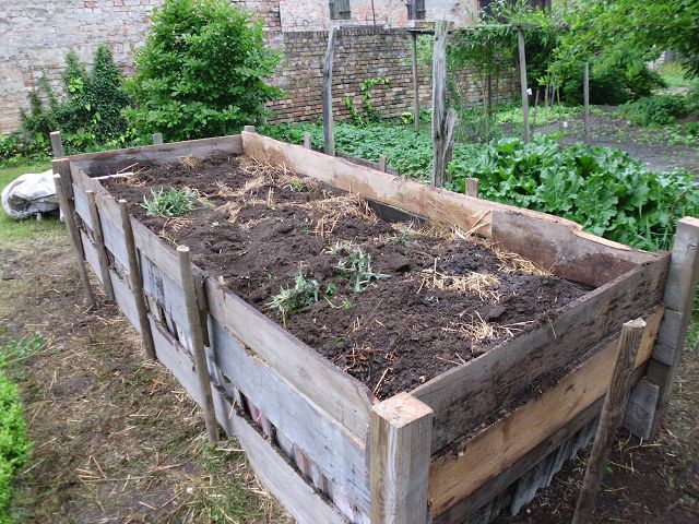 Die Befüllung erfolgt im Herbst mit Strauchschnitt Pferdemist und Gartenreste und natürlich Holzkohle. Im Frühjahr wird dann gepflanzt.