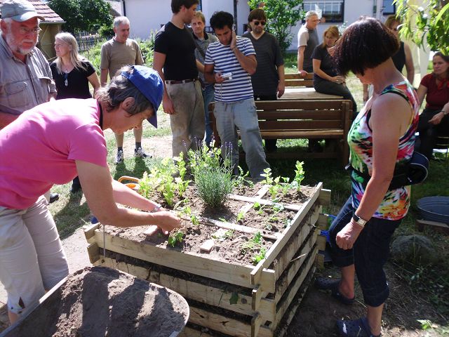 Unser Terra Preta Seminar im Wangeliner Garten letzten Sommer hat diese drei Hochbeete gefüllt. Angelegt wurden sie vorher vom Wangeliner Garten aus Holz und aus Stein.