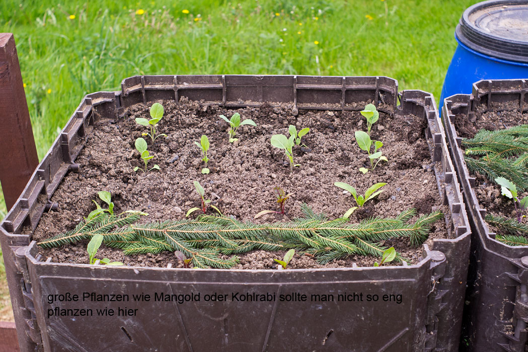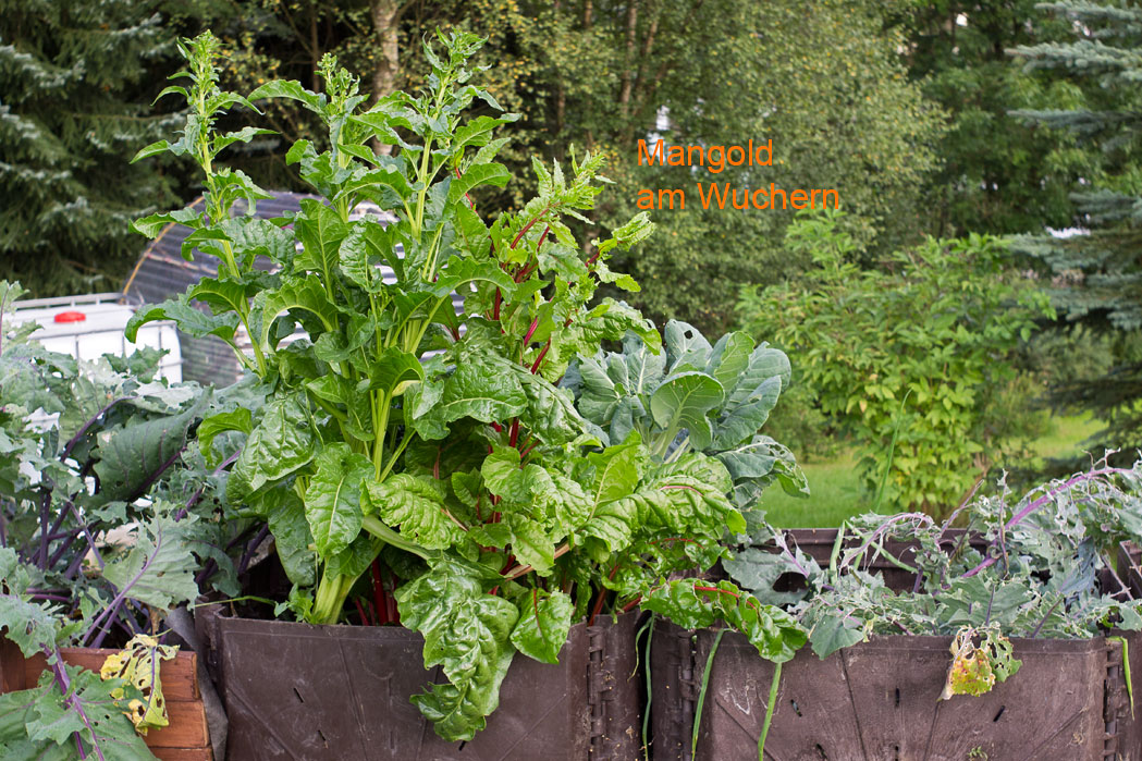 - großblättrige Pflanzen wie Mangold, Möhren, Kohlrabi werden wir nicht mehr ins Hochbeet setzen, da sie kleinere Pflanzen abschatten und einfach zuviel Platz verbrauchen
