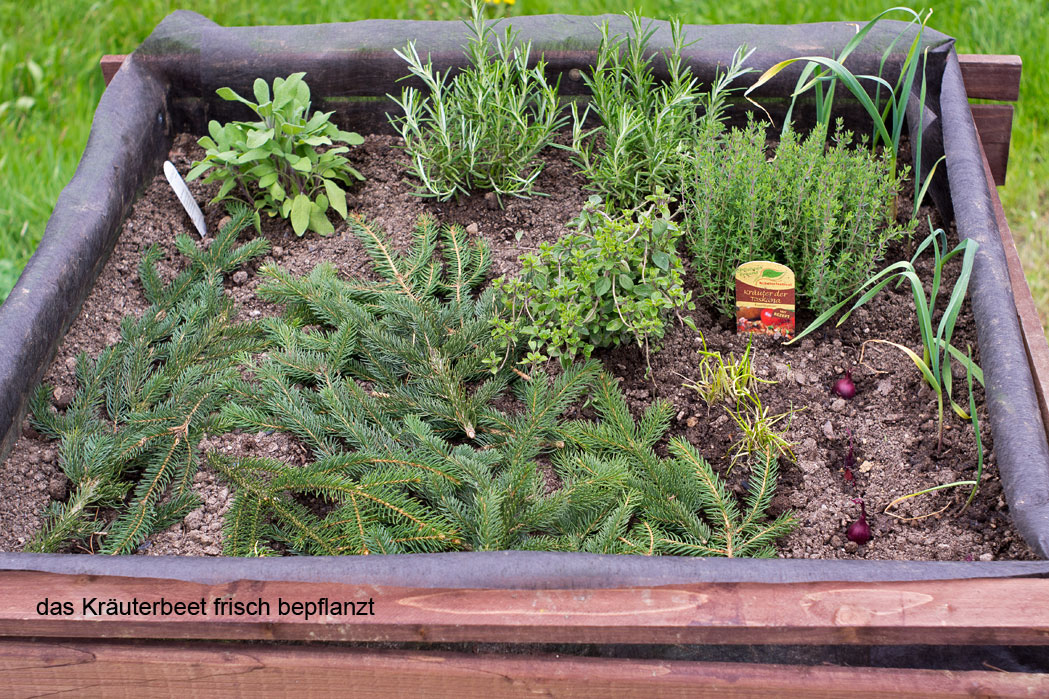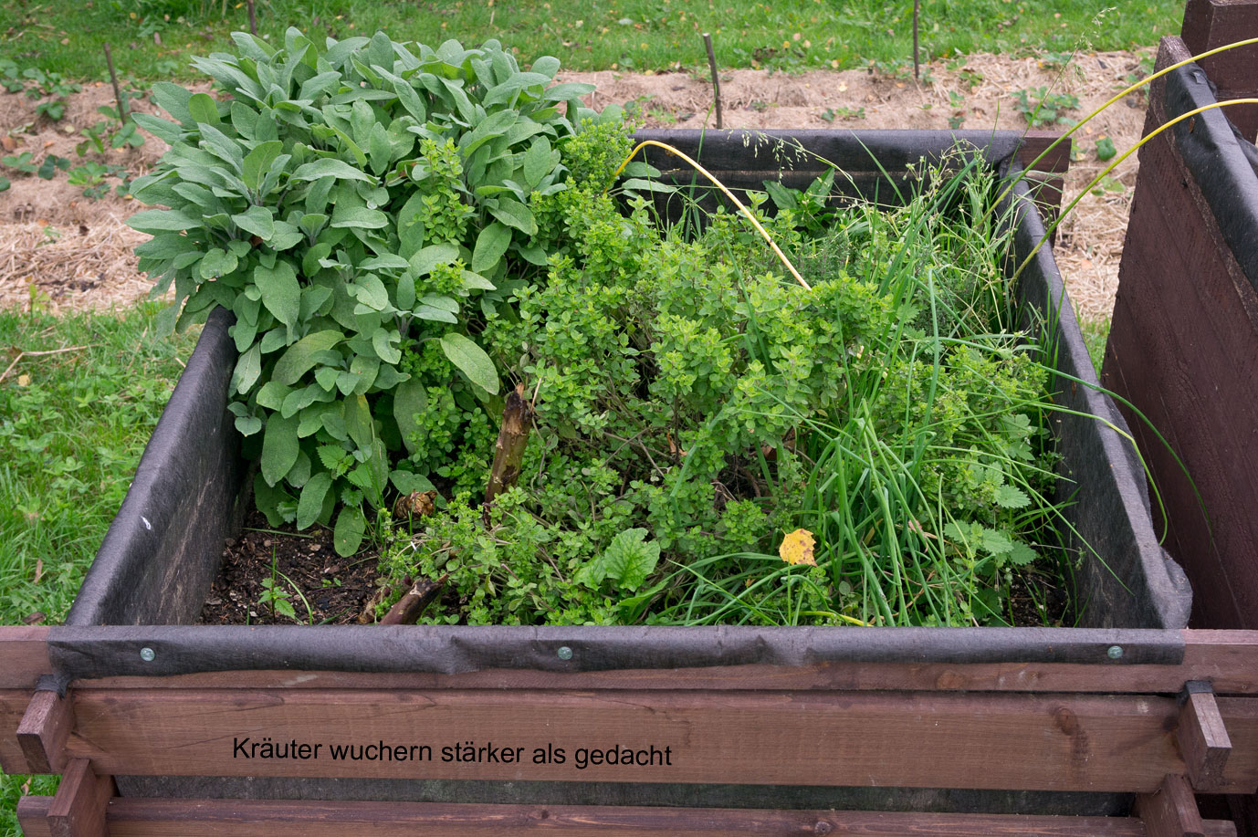 - auch für Kräuter kann man ruhig etwas Platz einplanen, vor allem der Salbei ist stäker gewaschsen als erwartet
