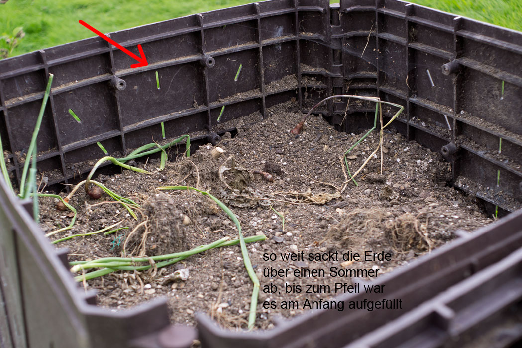 - die Erde sinkt zum Teil sehr stark ab, wenn man es nicht zu eilig hat, sollte man das Beet nicht sofort bepflanzen