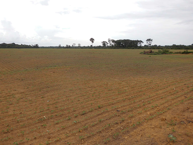 Schlimmer sind die vielen zehntausende Hektar großen Sojafarmen, die genmanipuliertes Soja für den Export nach Europa als Viehfutter anbauen, auf gepflügten, ausgedörrten, heißen Flächen. Bei Belterra sahen wir solche endlosen Sojawüsten, hier ist die Verdunstung und Kühlung zusammen gebrochen. Auch für Rinderweiden werden Regenwälder abgeholzt. Die dünne lückige Grasdecke der Rinderweiden schafft nicht die nötige Verdunstung. Oft reißt der Regen metertiefe Erosionsrinnen in Ackerland und Weiden.