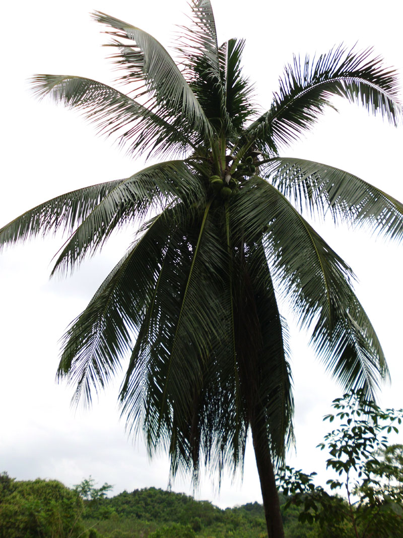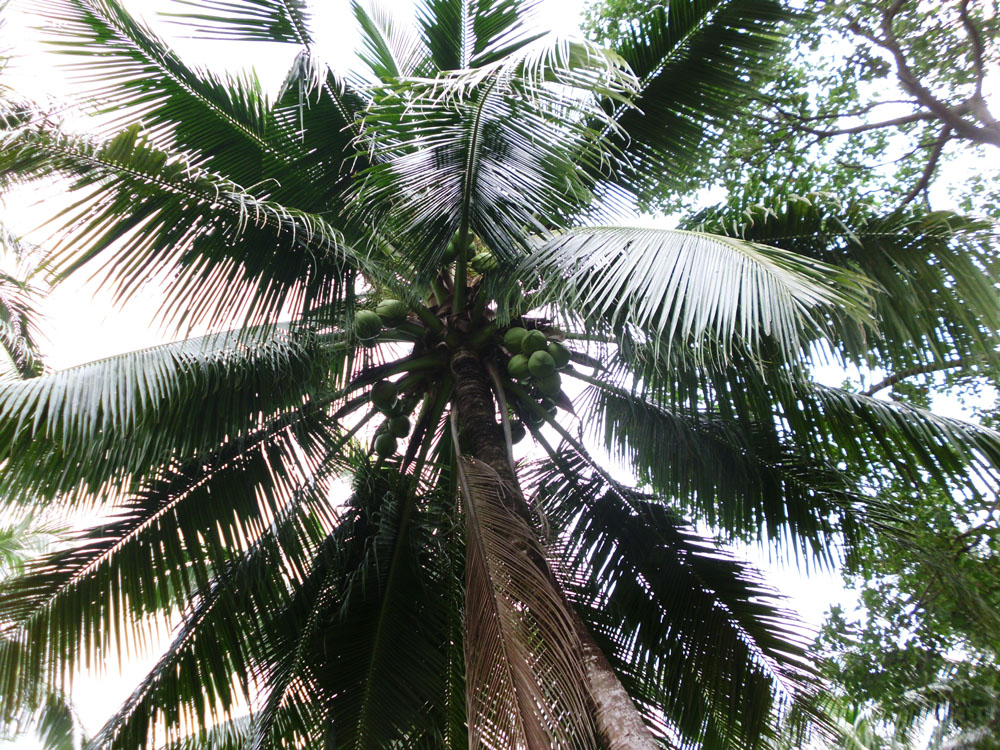 Hier sind die Kokosnüsse am Baum gut zu erkennen.