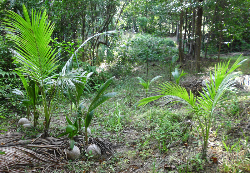 Zusammen mit allen menschlichen Abfällen und Ausscheidungen und mit einem gründüngenden Unterwuchs kann man erstklassigen Terra Preta-Kompost machen, für Neupflanzungen und z.B. Gemüsebeete unter den Palmen. Anders als bei uns, wächst das Gemüse in den Tropen gut im Schatten.