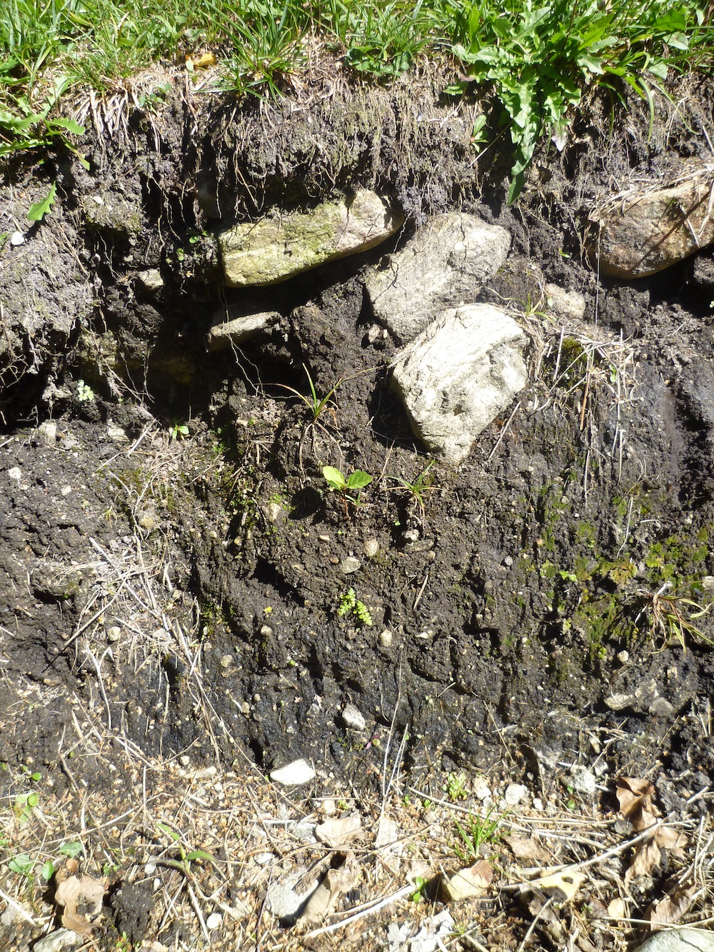 Nachdem vor kurzem entlang der Elbe im Norden Deutschlands eine durch die Slaven gebildete Schwarzerde entdeckt wurde kann ich nun auch von so einer Schwarzerde aus dem Tessin in der Schweiz berichten. Die Fläche, wo die Erde schwarz ist (und demzufolge stark mit Kohle angereichert), ist nicht atemberaubend gross, dennoch sind einige direkt sichtbare Stellen pechschwarz. Einen Spaten hatte ich keinen dabei um zu schauen, wie tief und auf welcher Fläche die Erde mit grösseren Mengen Holzkohle versetzt ist. Klar ist jedoch, dass der Eintrag von Holzkohle vor ungefähr 500 Jahren aufgehört hat.