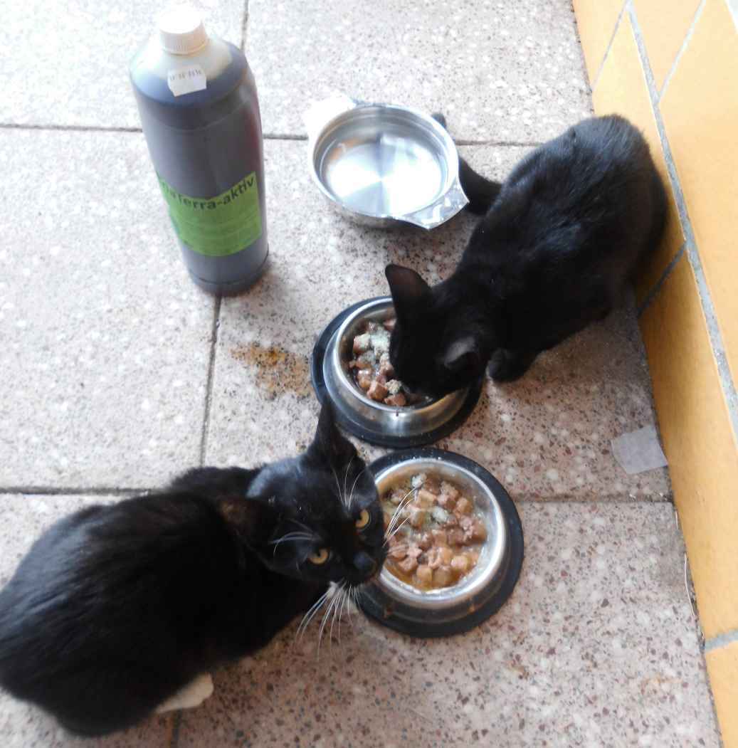 Unser Erdbeerfeld haben wir mit Hokkaido überwuchern lassen, die perfekte Doppelnutzung. Kürbis passt übrigens auch zum Kartoffelbeet ohne Minderertrag. Die Mitarbeiterin Josi freut sich über die perfekte Hefeblume auf unserem TriaTerra-Honig. Die jungen Kätzchen Obax und Nina werden mit EM und Zeolith gedopt für künftige Höchstleistungen beim Mäuse fangen.