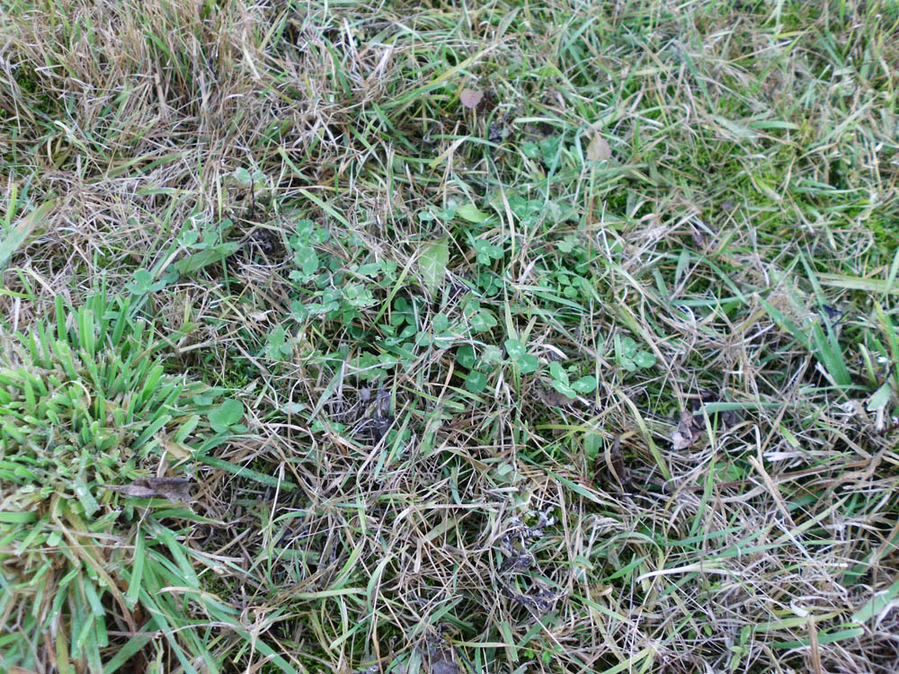 Weißklee und Rotklee in der Wiese. Grasschnitt wird bisher immer liegen gelassen außer direkt an der Terasse.