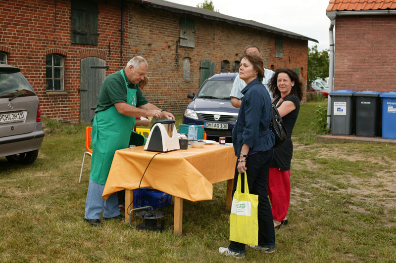 Das 2. Groß Pankower Erdbeerfest vor zwei Wochen hat voll eingeschlagen. Kachelmanns Wettervorhersage drohte uns mit einem verregneten Tag (http://wetterstationen.meteomedia.de) aber wie immer ist das meiste an Groß Pankow vorbei gezogen. Die Elde (unser wild mäandrierender Fluß, perfekt zum Wasser wandern), der Treptowsee und die Ruppiner Berge verschwören sich regelmäßig um Schauer und Gewitter abzulenken. Nur einen kurzen Schauer mussten wir überstehen, während die dicken Regenwolken den ganzen Tag in wenigen Kilometern vorbei zogen.