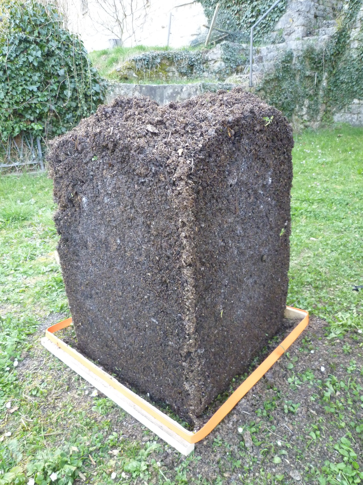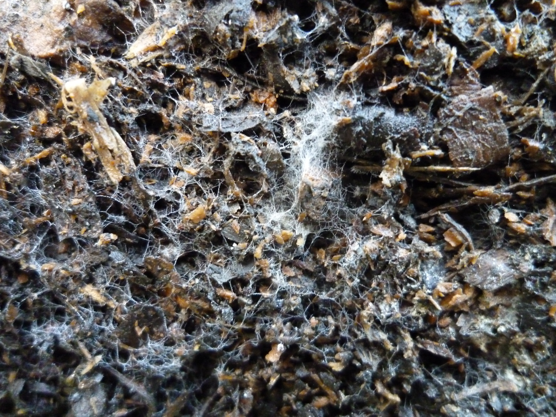 der Winter ist (zumindest voraussichtlich) vorbei und ich hab's leider mit der Kompostheizung nicht rechtzeitig geschafft. Jetzt heizt's aber ganz kräftig ein, hier zu sehen ist ein supereinfacher, superbilliger Thermokomposter den ich zusammenimprovisiert habe (bald brauche ich viel fruchtbaren Kompost). Der Komposttumbler hat bisher nur mässig funktioniert, wahrscheinlich liegt es daran dass die Luftzufuhr nicht ausreichend ist, d.h. ich habe ihn zu dicht gebaut. Was für mich beim Kompost auf den Fotos erstaunlich ist, sind diese Pilzhyphen, die das ganze Material durchziehen. Die Temperatur ist ca. 55°C, es muss also ein thermophiler Pilz sein. Das wichtigste daran ist dass dieser Pilz es überhaupt erlaubt, dass genügend Sauerstoff durch den Haufen (oder Turm) diffundieren kann. Das Material besteht aus gehäckselten Küchenabfällen, Sägemehl und Holzkohlepulver und Urgesteinsmehl. Jetzt giesse ich nach Gefühl laufend etwas Urin oben hinein um das meiste aus dem überschüssigen Kohlenstoff zu gewinnen.