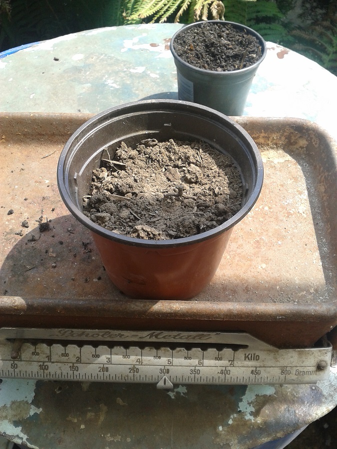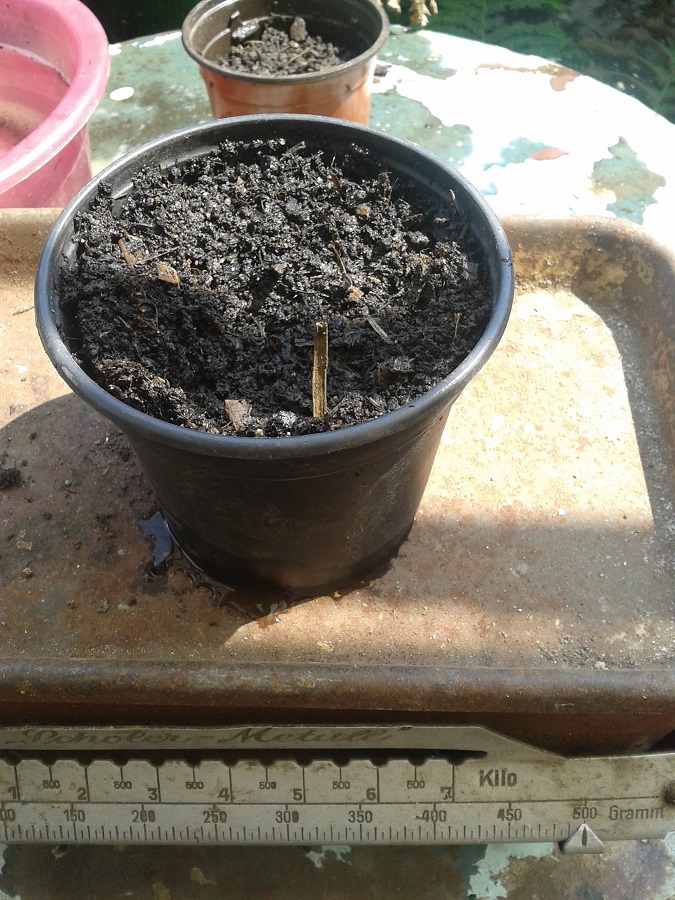 Nun habe ich beide Töpfe halbschattig aufgestellt und werd sie jeden Tag wiegen mal sehen.