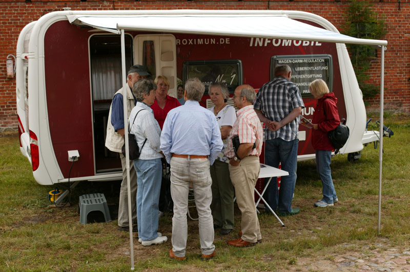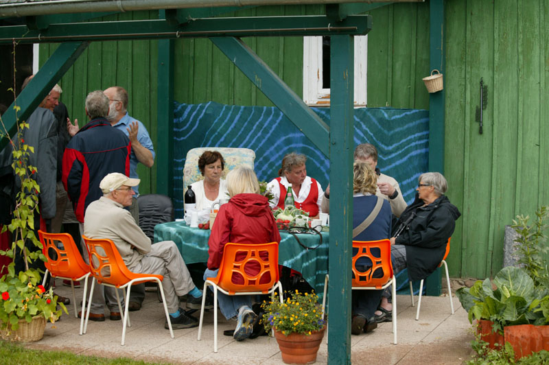 In Groß Pankow war es also überwiegend trocken und wir hatten einen wilden Jahrmarkt mit allen möglichen Ständen. Von Seil drehen und EM-Kosmetik über Naturbauhaus Schwerin (Bauberatung http://www.naturbauhaus.de), Demeterprodukte (Käse, Quark, Wurst http://www.siebengiebelhof.de), Froximmun (Entgiftung mit Zeolith http://bni-biene.de/17.html), Fostac (Stromspargerät, http://www.strom-elektrosmog.de), Rohkost, Heilen mit Matrixenergie (http://www.matrix-energetics.net/anwend ... e/687.html) bis zu grünen Smoothies und natürlich unserem EM und TriaTerra-Stand (http://www.triaterra.de). Ganz entspannt ab 14:00 Uhr mit indischem EM-Kaffe und indischem Menü. Vom indischen Essen habe ich nichts mehr abbekommen. Es müssen also eine ganze Menge Leute da gewesen sein, die im Garten flaniert sind und sich in den Sitzecken ausgeruht und ausgetauscht haben. Das klappt sehr schön. Mal keine Veranstaltung mit Vorträgen im Halbstundentakt sondern nur gemütlicher Austausch in gemütlichen Sitzen und persönliche Beratung an den vielen Ständen. Das können wir weiter so machen.